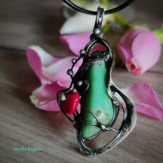 Cínovaný šperk "HRUŠKA" /Chryzopras a Korál/