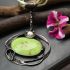Zavěšeno na šňůrkách - dvěma hedvábných a jedné saténové. Zakončení je karabinkou.